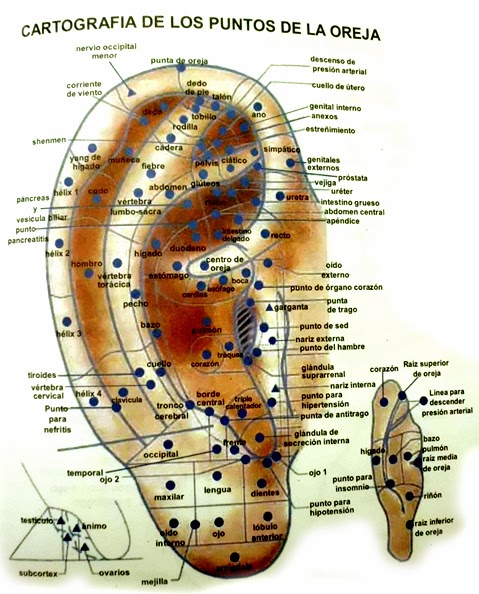 Actualmente se conocen más de 200 puntos biológicamente activos en la oreja con los cuales se pueden tratar numerosas enfermedades. En la oreja existe un punto reflejo para cada zona del cuerpo, que es perceptible en el caso de enfermedad; sólo cuando una región del cuerpo humano pierde el equilibrio fisiológico, pueden detectarse en la oreja los puntos alterados. Este hecho es clave y puede utilizarse como método de diagnóstico. Por otro lado, una vez detectados los puntos, se puede proceder a su estímulo para volver a equilibrar el organismo.